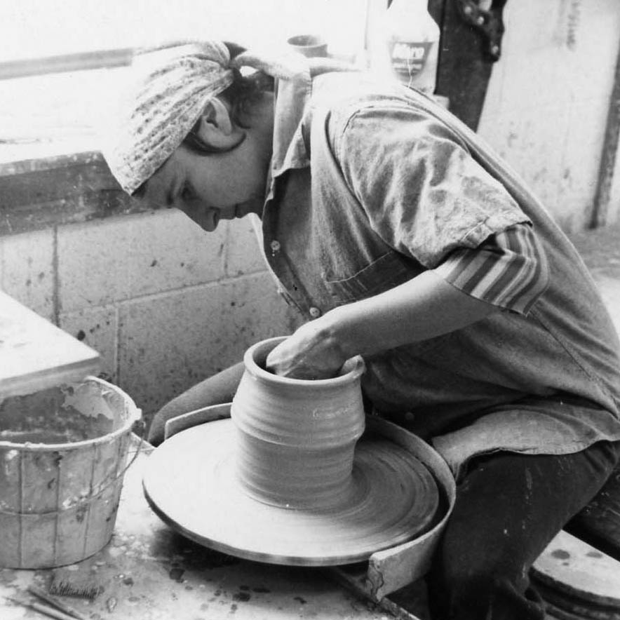 Betty Woodman working at the Manufacture nationale de Sèvres, France, c. 1987. Woodman Family Foundation Archives.