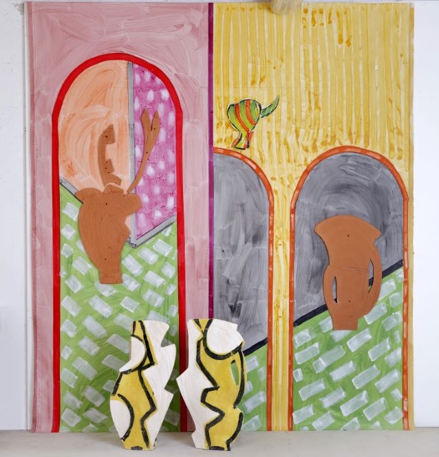 Betty Woodman. “Lake View,” 2013, 60 x 46 x 11 1/2 in. Glazed earthenware, epoxy resin, lacquer, acrylic paint, wood, canvas © Woodman Family Foundation / Artists Rights Society (ARS), New York