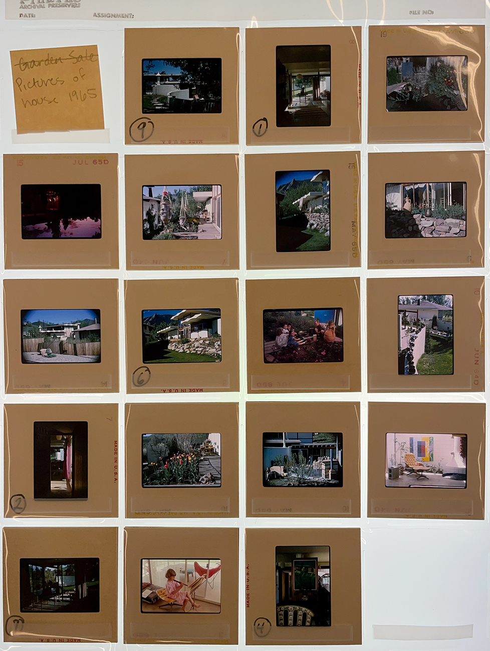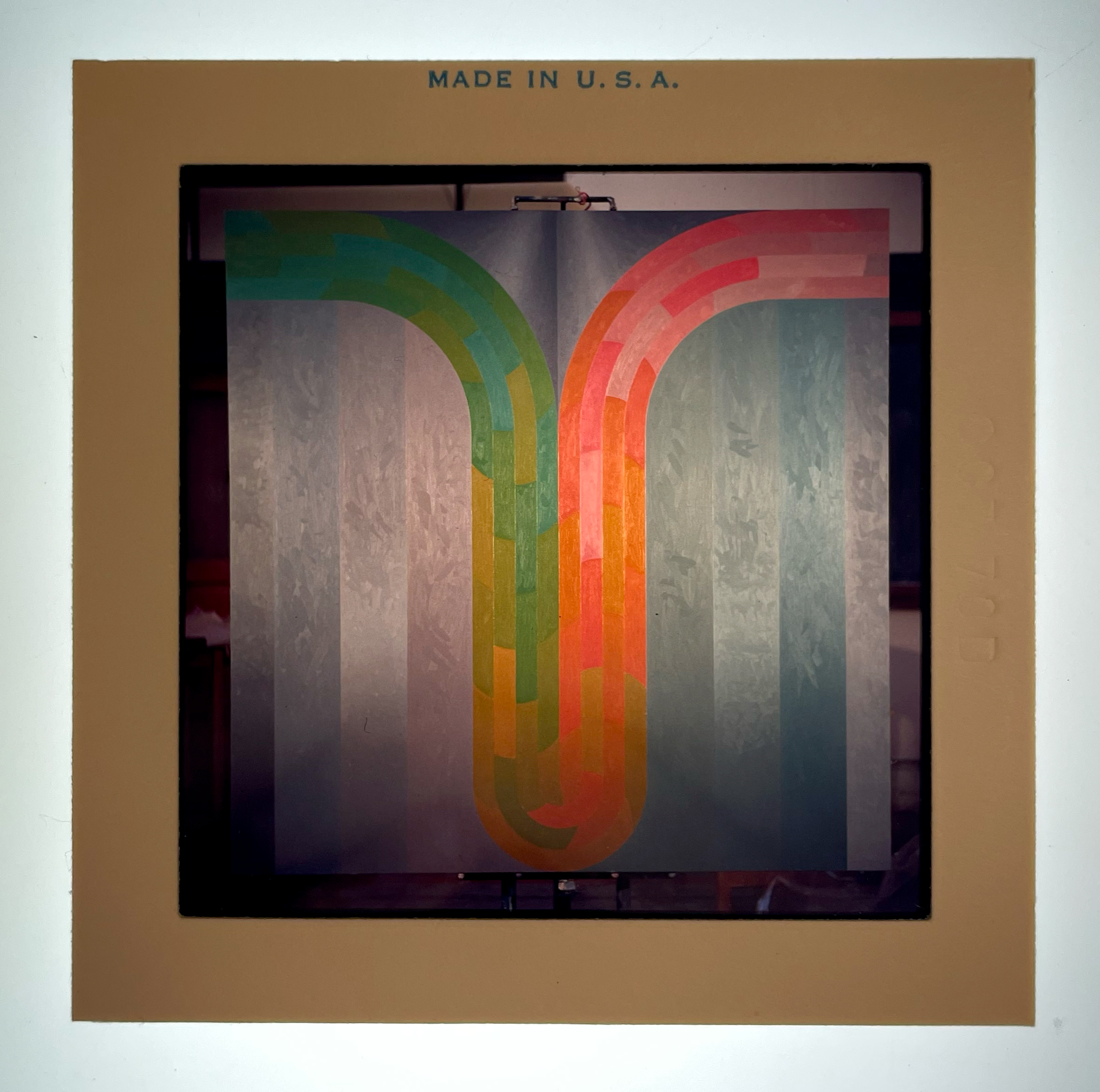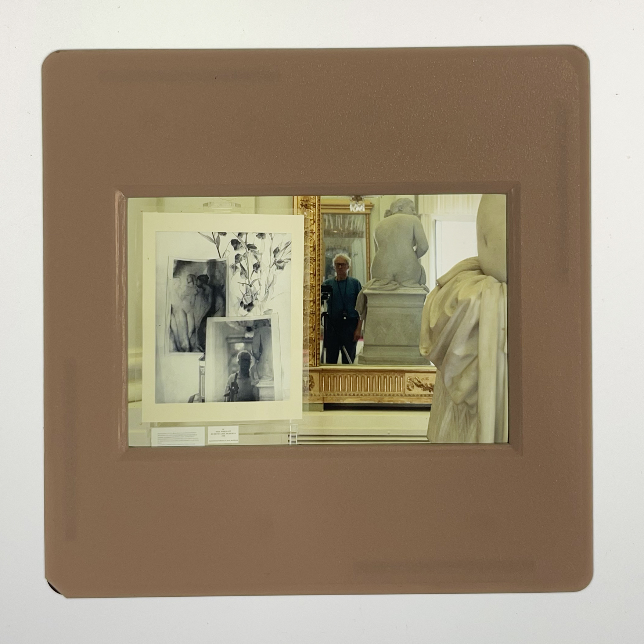 L to R: George Woodman, c. 1963 from slide preserver with slides most likely from his solo exhibition at Henderson Gallery, University of Colorado, Boulder, 1963. The installation views of such an early show in George's career are so exciting to see, especially since there are far fewer photos of these earlier shows / Photo of George’s New York studio with “Lattice Lady with Convolvulus,” 1986 visible in the background. I love getting glimpses of the artist's studios and how the set up of them reflects the artist himself / George's Palazzo Pitti show in 1987 where he can be seen taking the photo in a mirror. I don't actually get to see images of George, so I liked that he set up this shot so that you could see him actually taking the photo / Overview of a small portion of slide cases in George's collection. Not the prettiest picture, but it's interesting to see the number of slide cases in the collection and George's handwriting on each of them / Slide preserver with slides from a trip to Spain in 1965 featuring photos of tiles, nature, and people. I like how even on a trip, George is still thinking about his art and taking photos of things that can inspire his own work / Slide of George Woodman. “Untitled #VIII,” c. 1980s. Monotype. 30 x 22 in. I thought it was interesting to see the process and sketch of an artwork and how it is different from the final product / Slide preserver “Pictures of house 1965” featuring the interior and exterior of the family’s house in Boulder, Colorado. It's a view into the personal life and residence of George, and one of the few times in the slides where it seems that none of the photos are related to any artworks or research / Slide of George Woodman. “Untitled,” 1966. A medium format slide of one of George's earlier paintings that I really enjoyed / Slide preserver with slides from a trip to Morocco featuring photos of tiles, pottery, and the landscape. George is still thinking about his art and took photos of things that would inspire his own work. All materials George Woodman Collection, Woodman Family Foundation Archives, New York.