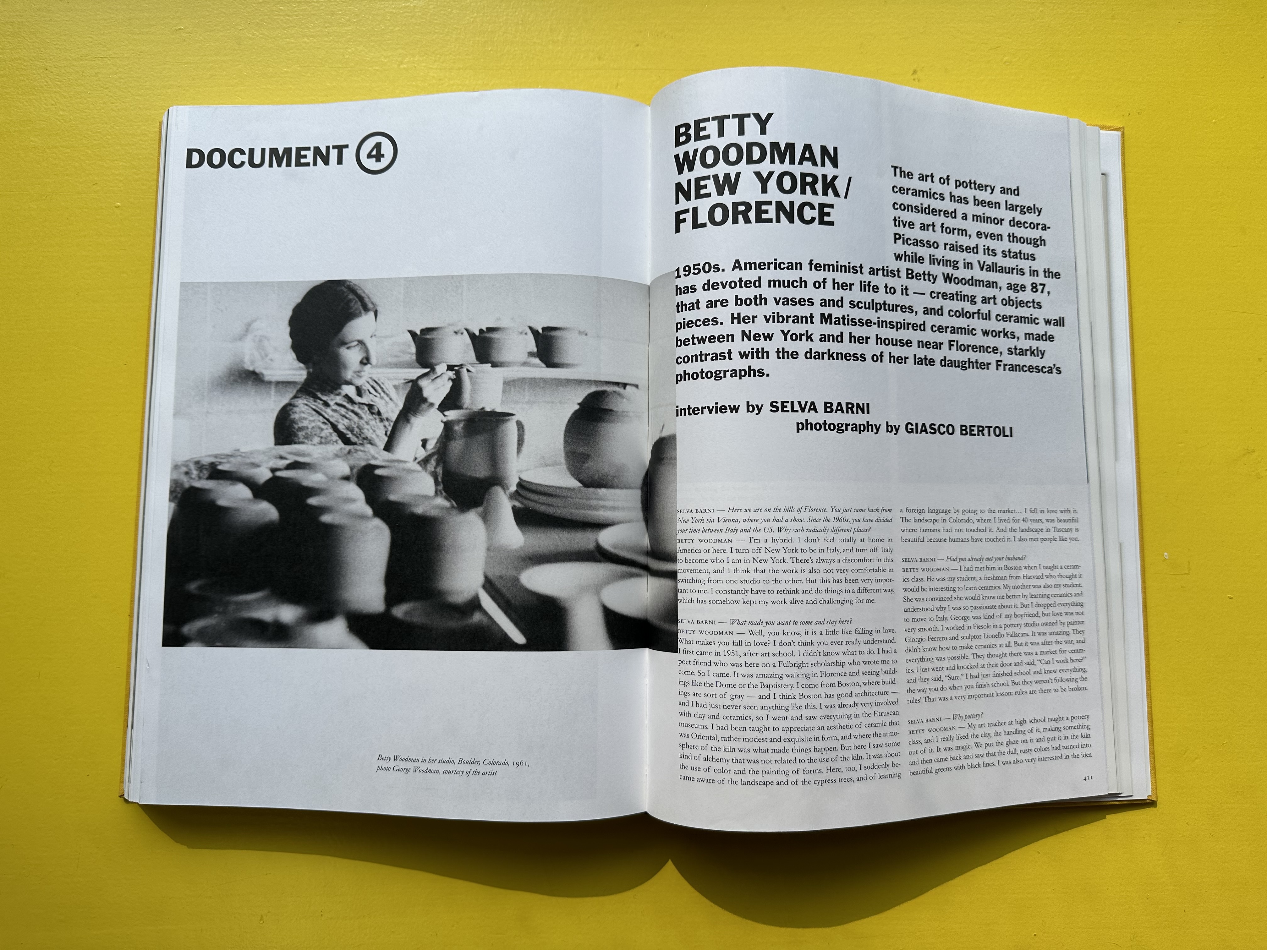 In this interview with Selva Barni, published in Purple Magazine in 2017, Betty Woodman talks about taking chances in her work and life, her relationship to feminism, her shift from potter to sculptor, and much more.