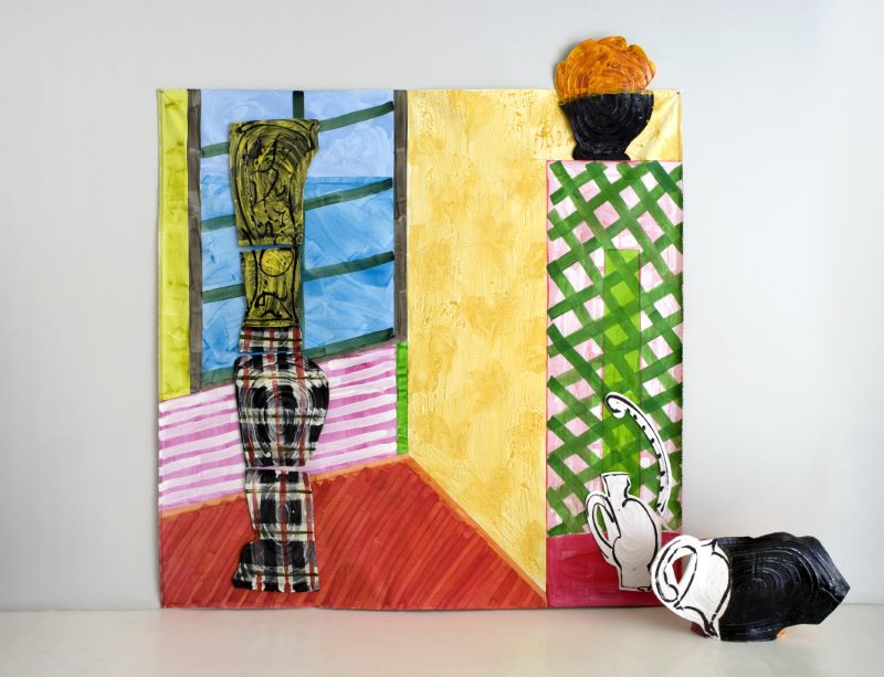 Not only does the collaboration with Carlson signify Betty Woodman’s navigation between the art and crafts discourse with her rich materiality and decorative impulses, but it also marks the beginning of Woodman's lifelong gravitation towards the wall—from being sources of her inspiration, such as American wallpapers, trompe l’oeil Pompeian frescoes, or Egyptian wall paintings, to ample canvasses for her grand, masterful compositions.