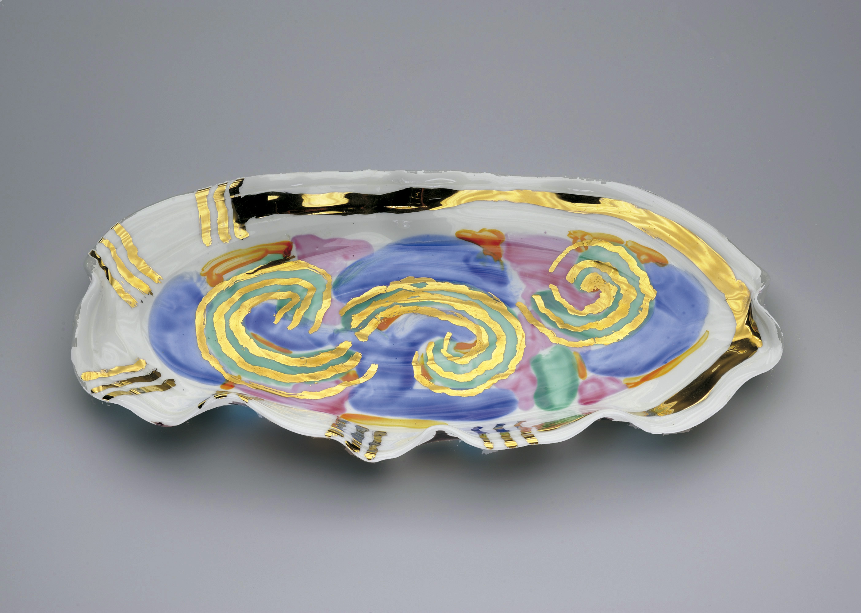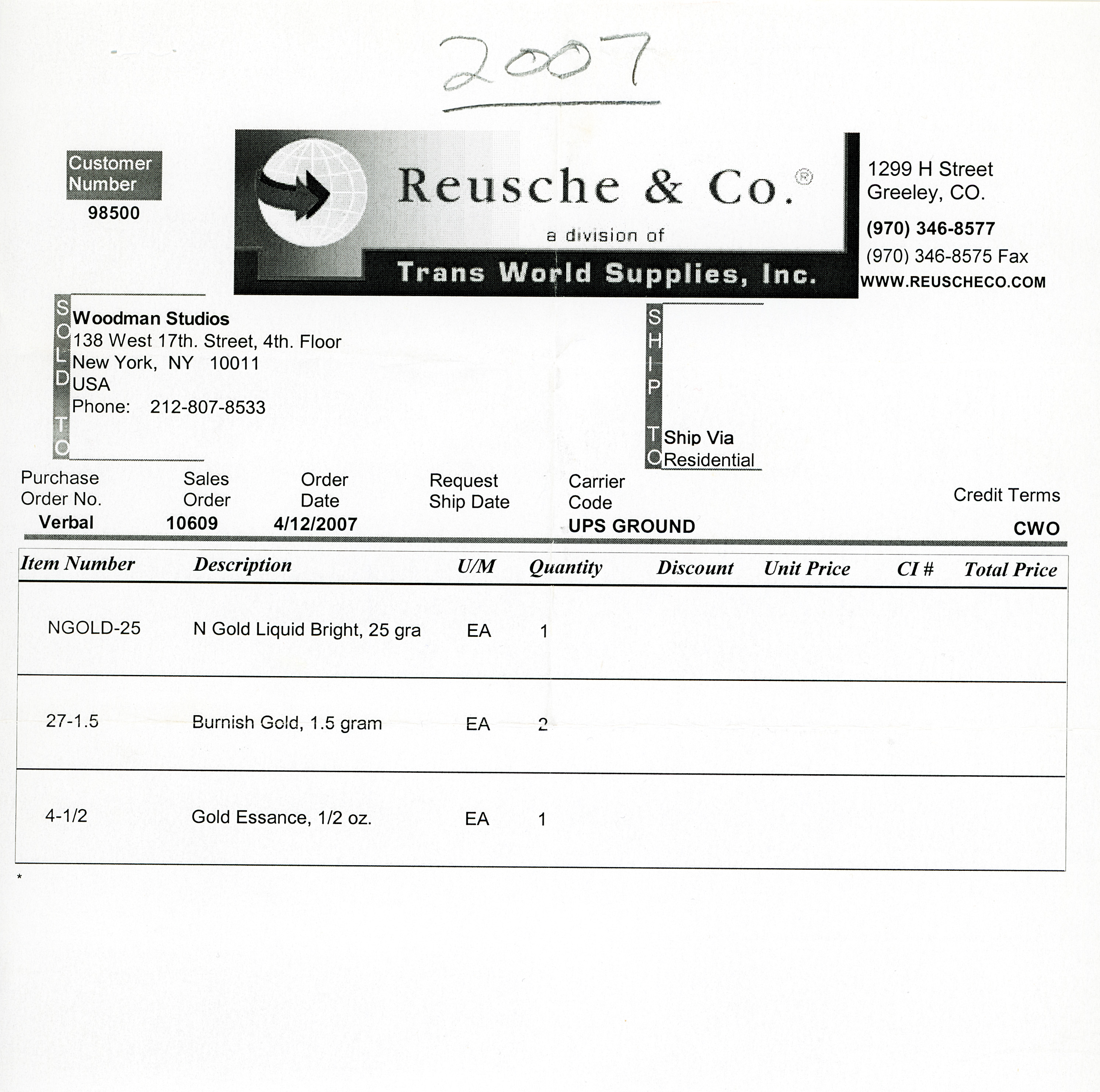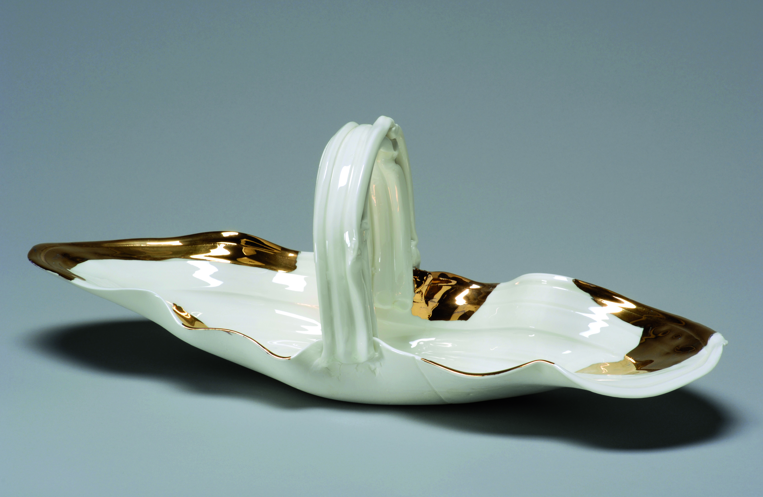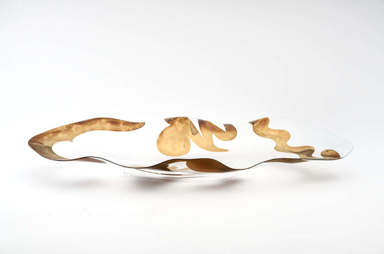 An example of these influences is Woodman’s pursuit of the radiant gold that appears throughout her work. In 2004, following a residency at CIRVA in Marseille, France—where she developed new projects using transparent glass and gold—Woodman returned to New York determined to find a vendor who could supply her with liquid gold. The resulting artworks shimmer with layered references, echoing the opulence of Roman frescoes, the delicacy of Kanazawa gold leaves, and the refined luminosity of Sèvres porcelain.