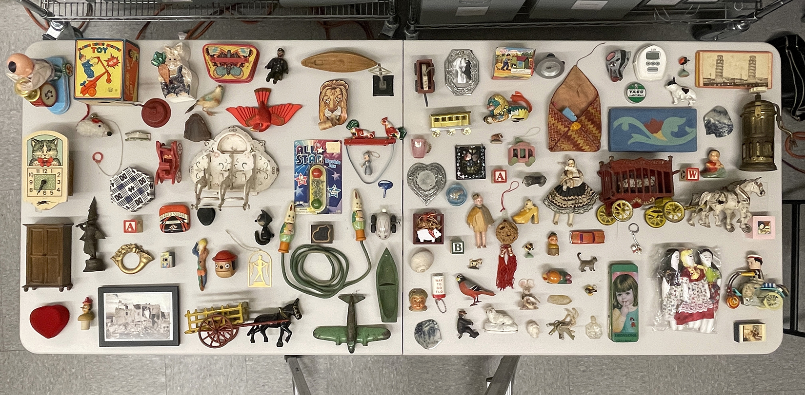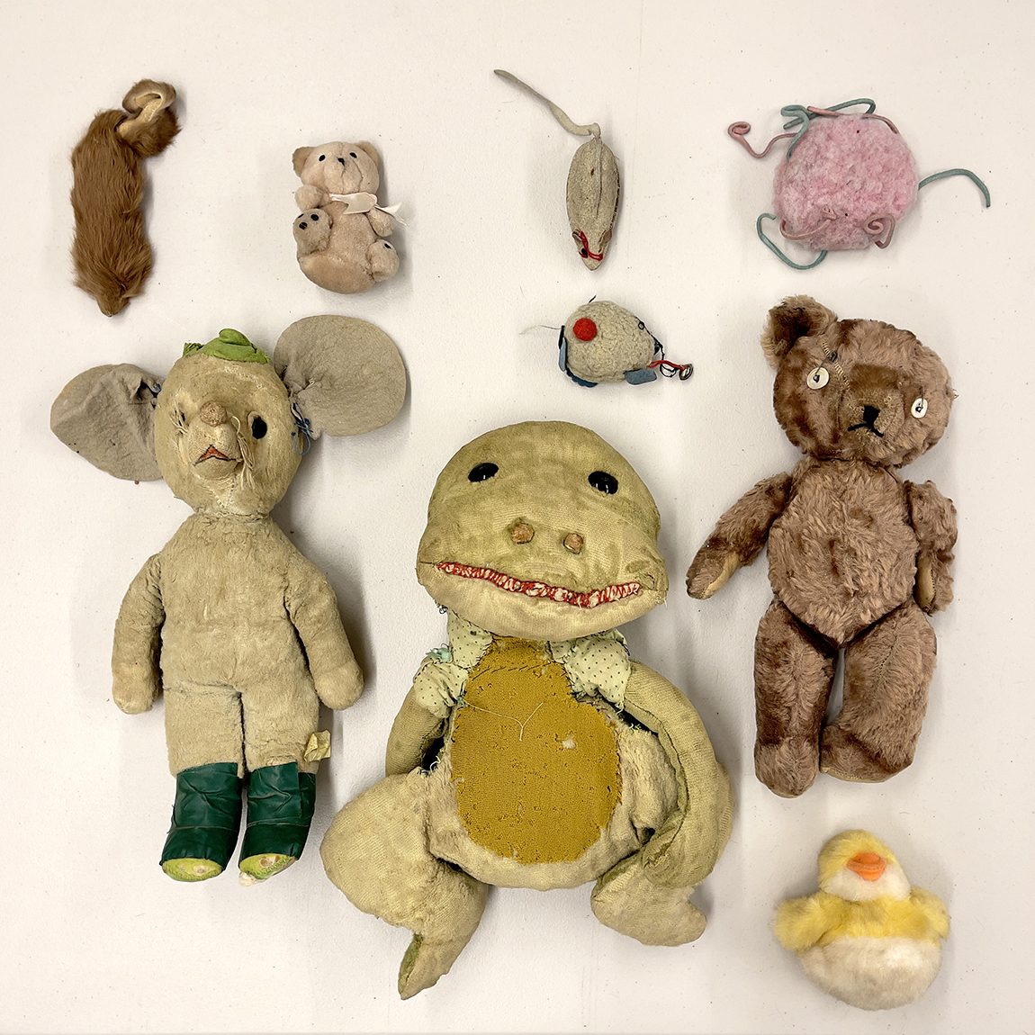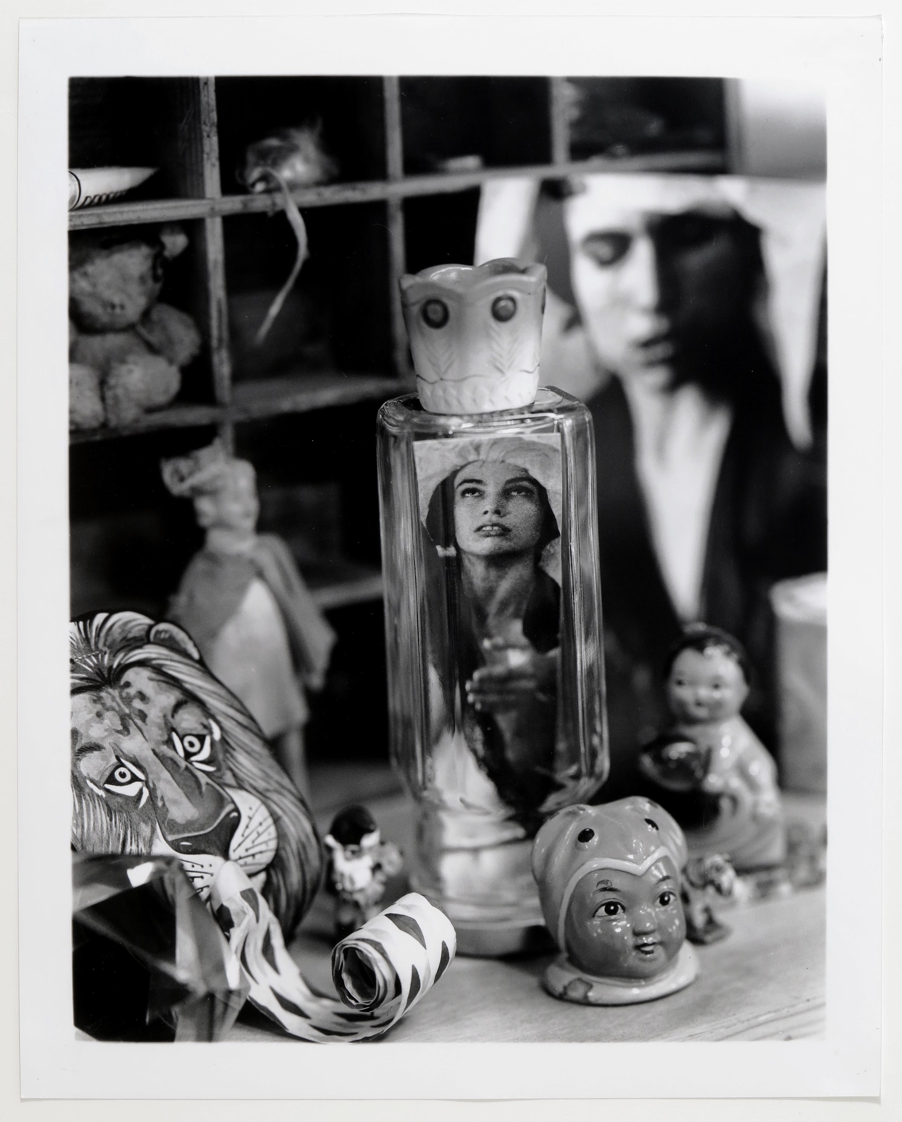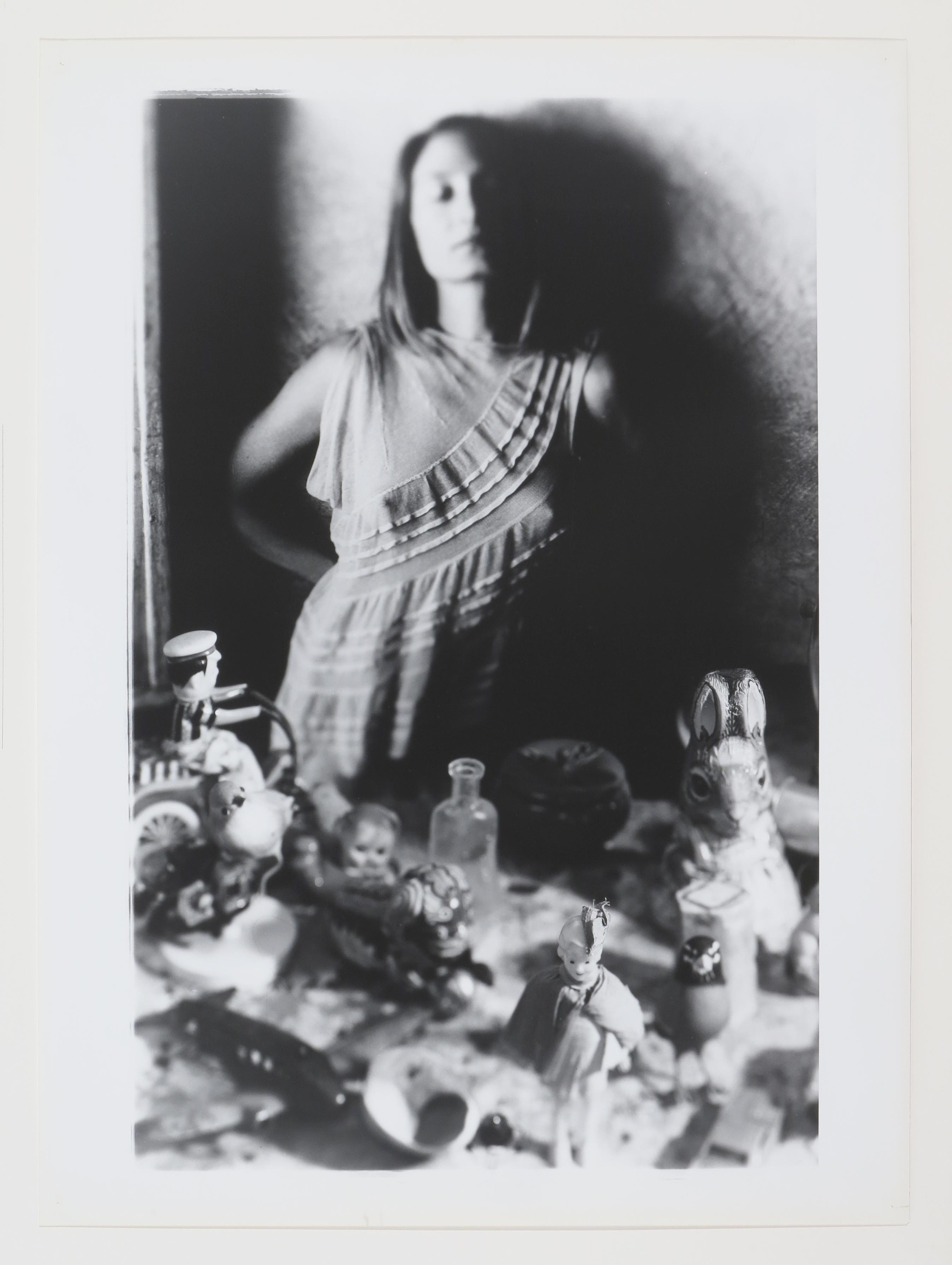 "…[T]hings have a life, greater or smaller, in the eye and the mind. This life unfolds, no limits can be set upon it, and the way it happens may be similar or very dissimilar from one person to another,” George Woodman wrote of objects generally, when considering those housed in museum collections, but these observations illuminate his own approach to still life and photography. The Woodman Family Foundation Archives include an eclectic array of found objects, toys and fabrics used by Woodman in his photographs. Likely collected from flea markets in New York, Italy and on his wide-ranging travels, or found closer to home among more ordinary personal ephemera, Woodman reinvented these various objects, incorporating them into his layered images of figures, patterns, props and pictures.