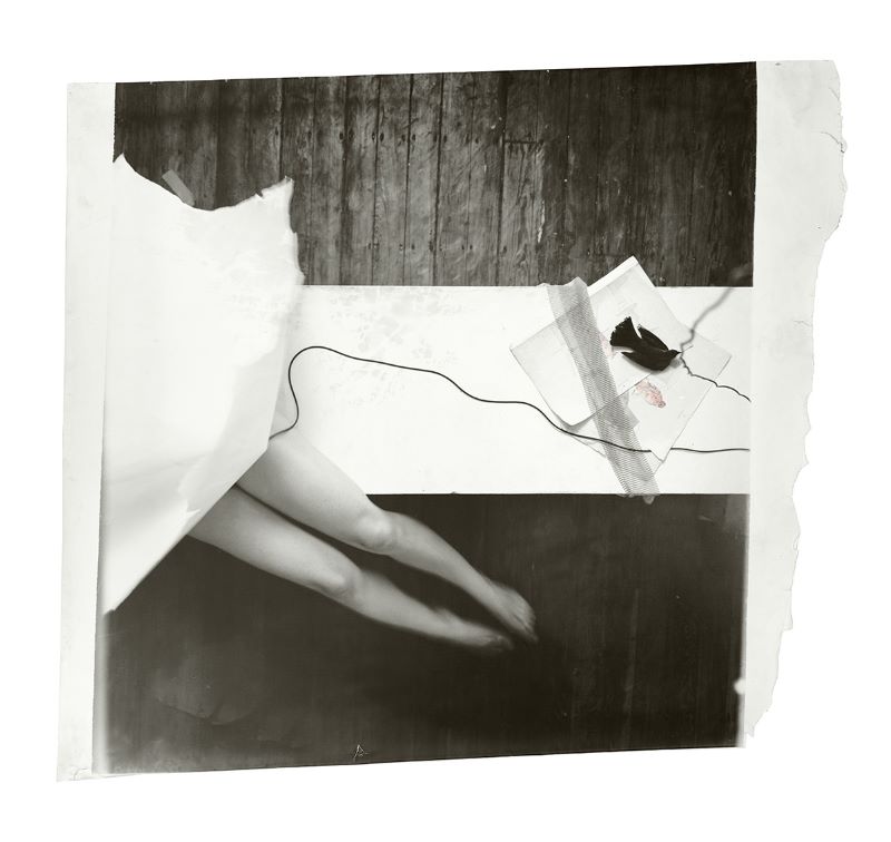 “One print freezes Francesca’s motion, falling off the support: behind her, displayed as an attribute of her flight, is a single outstretched wing. The birds are little more distinct than stiff silhouettes and do not invite prolonged attention. More consequentially they are inactive, frozen like the photographic moment, while the woman is in flight. Francesca explores all corners of the space, using the table as if it were a parallel bar. Her movements have a quality of pure exhilaration rather than exhibitionism. In these prints the woman tests her physical, temporal boundaries.”