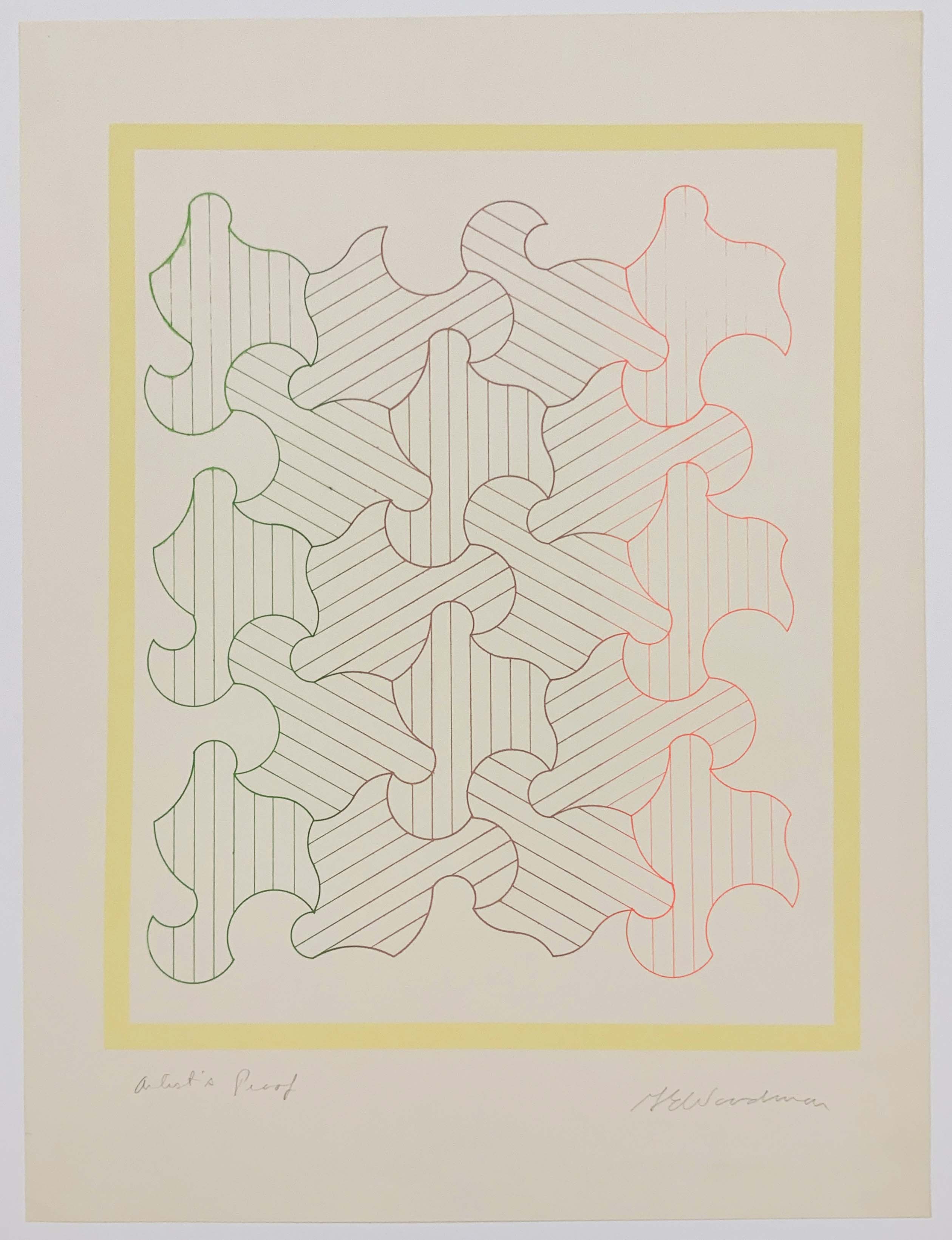 Fifty-two years ago this week would have been your last chance to see George Woodman’s solo exhibition at Spectrum Gallery in New York City. Woodman’s canvases and prints during this period were characterized by fields of interlocking, repetitive shapes, which, as Robert Berlind later described: “may be seen as a reprise of the transition earlier in the century from a still-descriptive cubism to a “purer” non-referentiality. These paintings are equally in keeping with the contemporaneous interests of Op Art and made a crucial contribution to the Criss-Cross movement which flourished in the 70’s in Boulder and had an impact on the New York scene.”