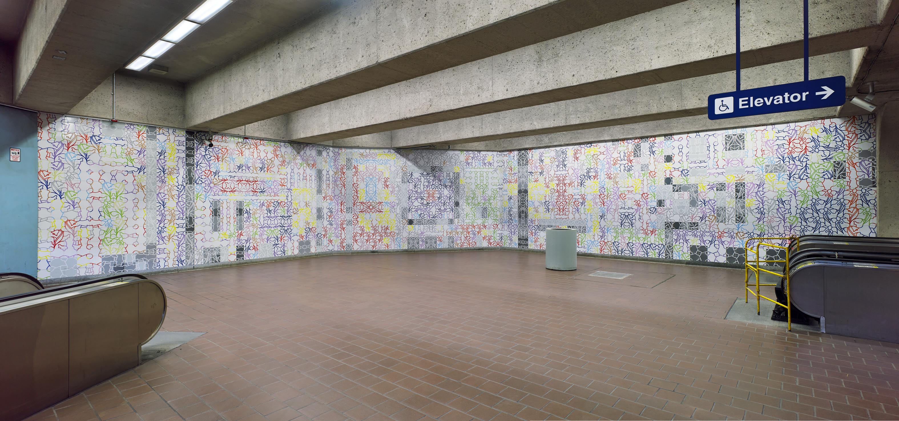George Woodman's ceramic tile installation, 1984, Delavan-Canisius College Station, NFTA-Metro, Buffalo, New York