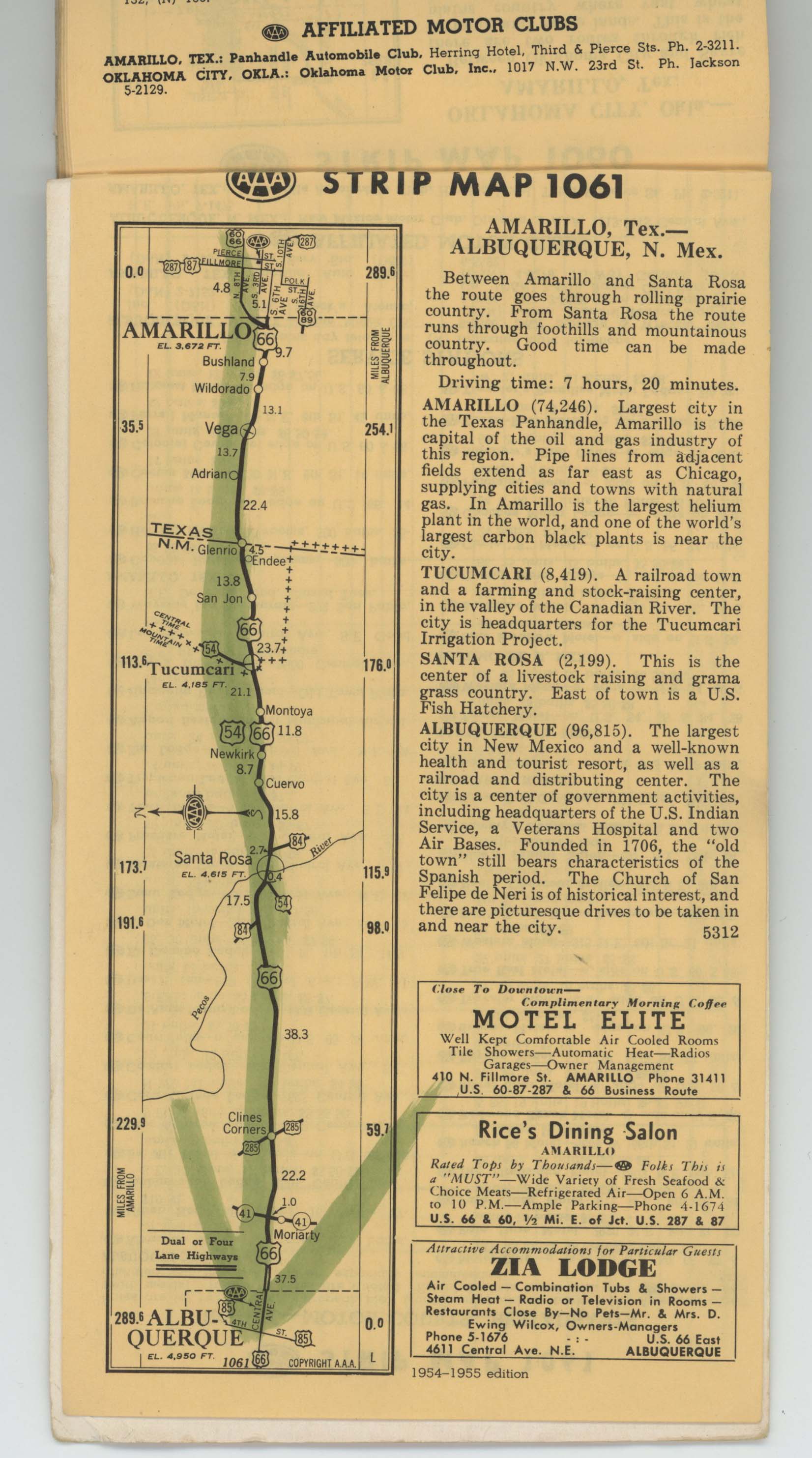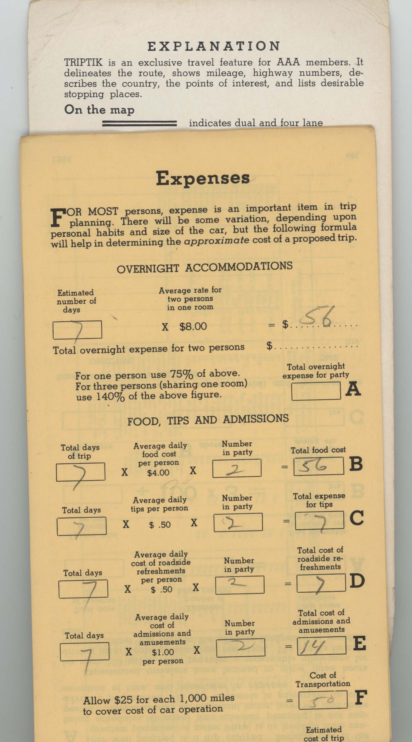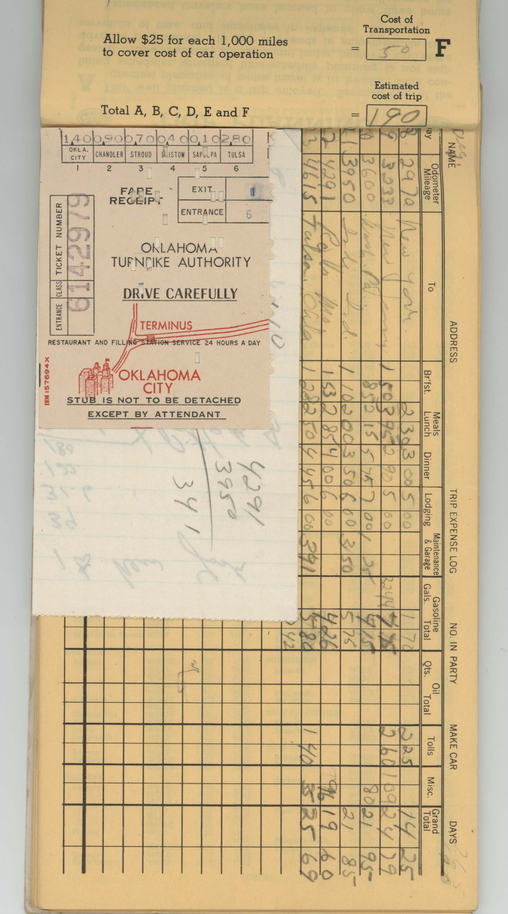 In the summer of 1954, recent college graduate George Woodman set out from Boston towards Albuquerque, New Mexico. He had a degree in philosophy, and a desire to study painting in a more concentrated way than he had been able to do as an undergraduate student supplementing his Harvard education with art courses at the School of the Museum of Fine Arts Boston. He and Betty—who had been married just a year—followed this set of Triptik maps across the country, carefully tracking miles and expenses along the way until they arrived at the University of New Mexico. They remained in Albuquerque for two years, heading to Boulder, Colorado after George earned his Masters in Painting in 1956.