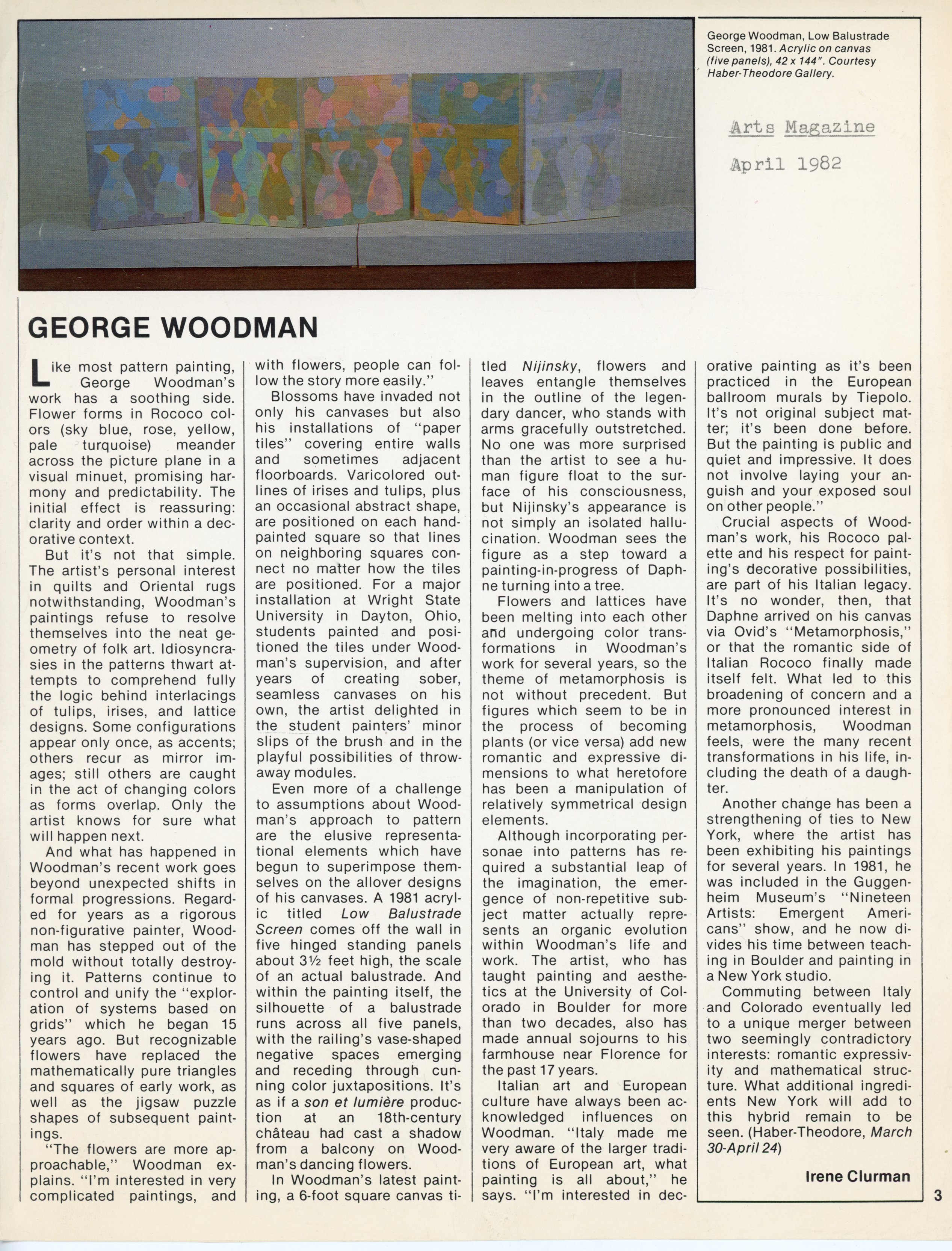 Irene Clurman on George Woodman, "Arts Magazine," April 1982