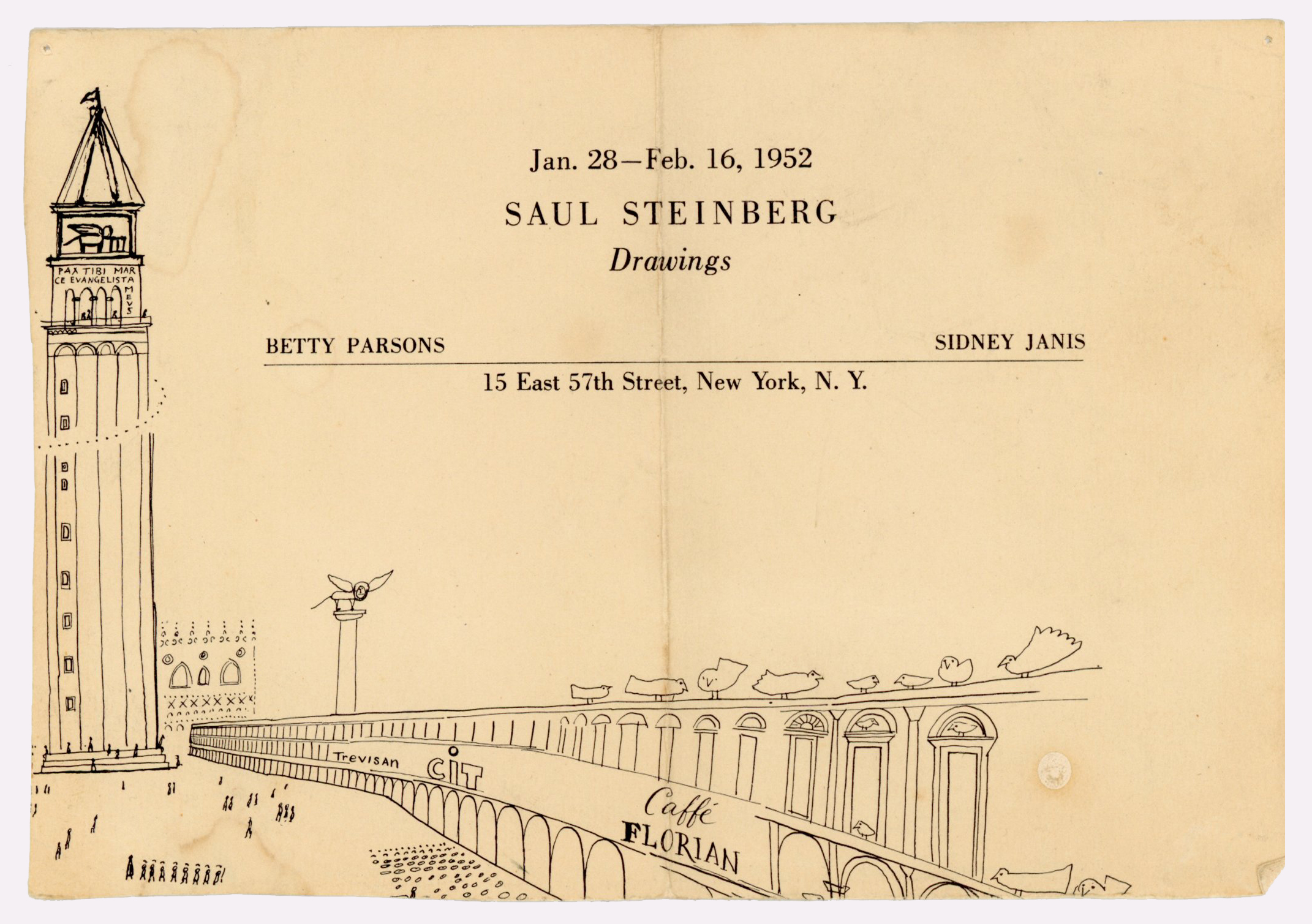 Saul Steinberg show announcement from George Woodman to Betty Woodman, 1952