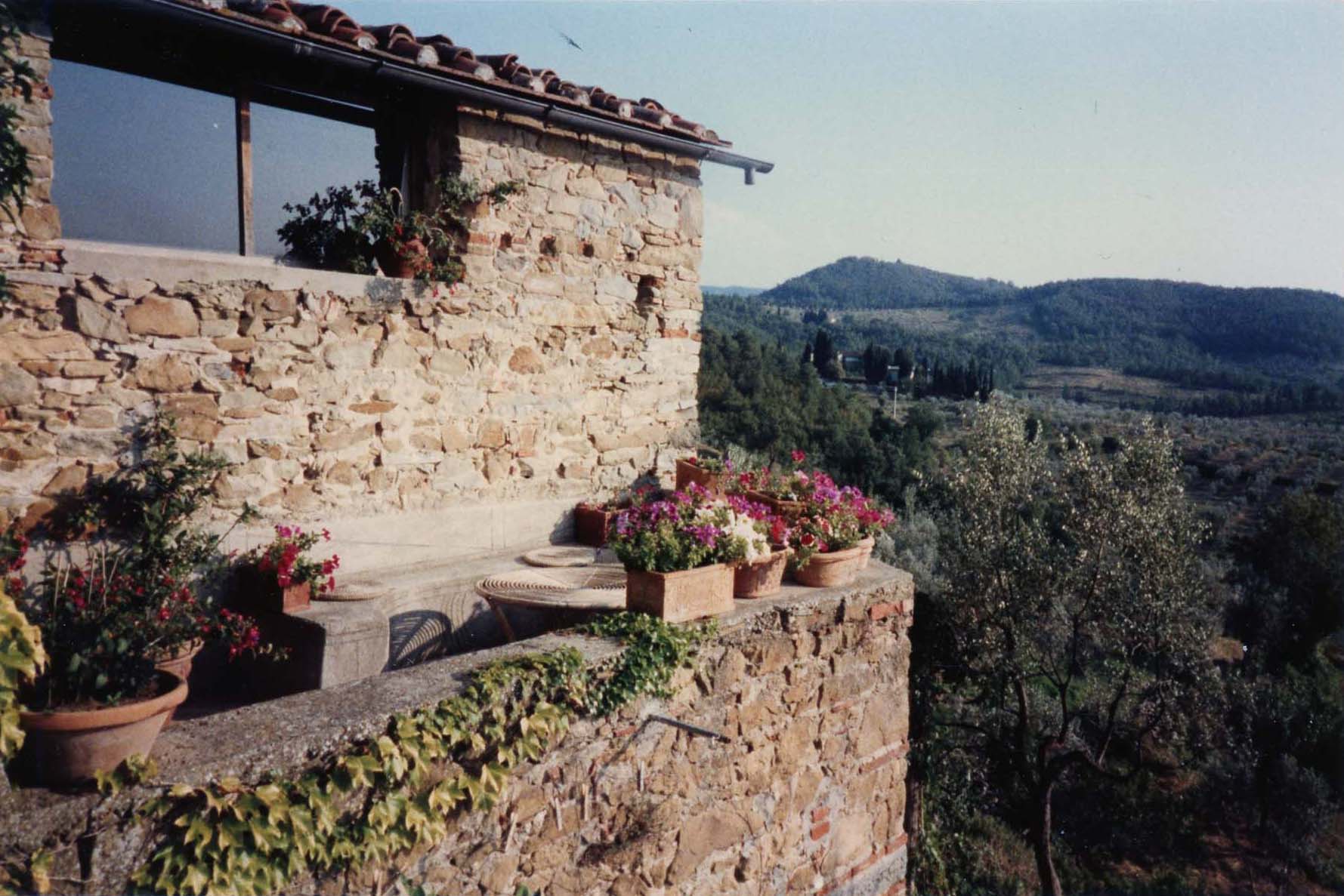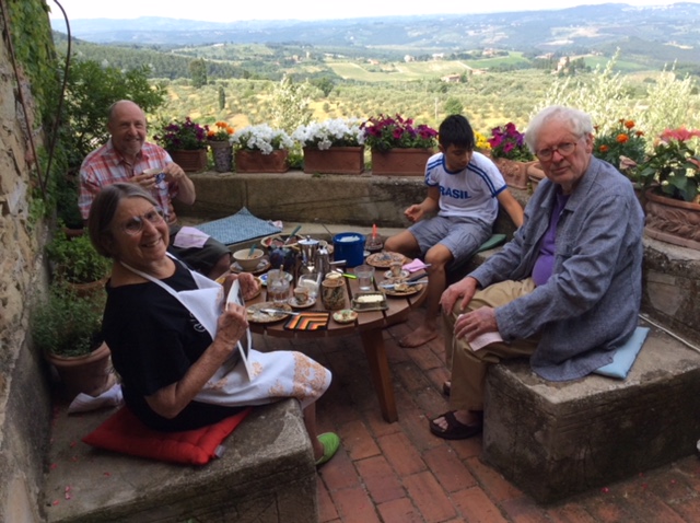 For over fifty years, the Woodman family has enjoyed many meals and conversations in the breakfast nook at their farmhouse in Antella, Italy. Built in a circular space that had originally housed a brick oven, the nook overlooks the hills of Tuscany and spectacular sunsets. On a clear day, a view of Florence is revealed, with the Duomo rising above the skyline. Surrounded by potted geraniums, fresh basil, and the occasional mourning dove, the family relaxed with each other and the many friends that visited them throughout the summer.