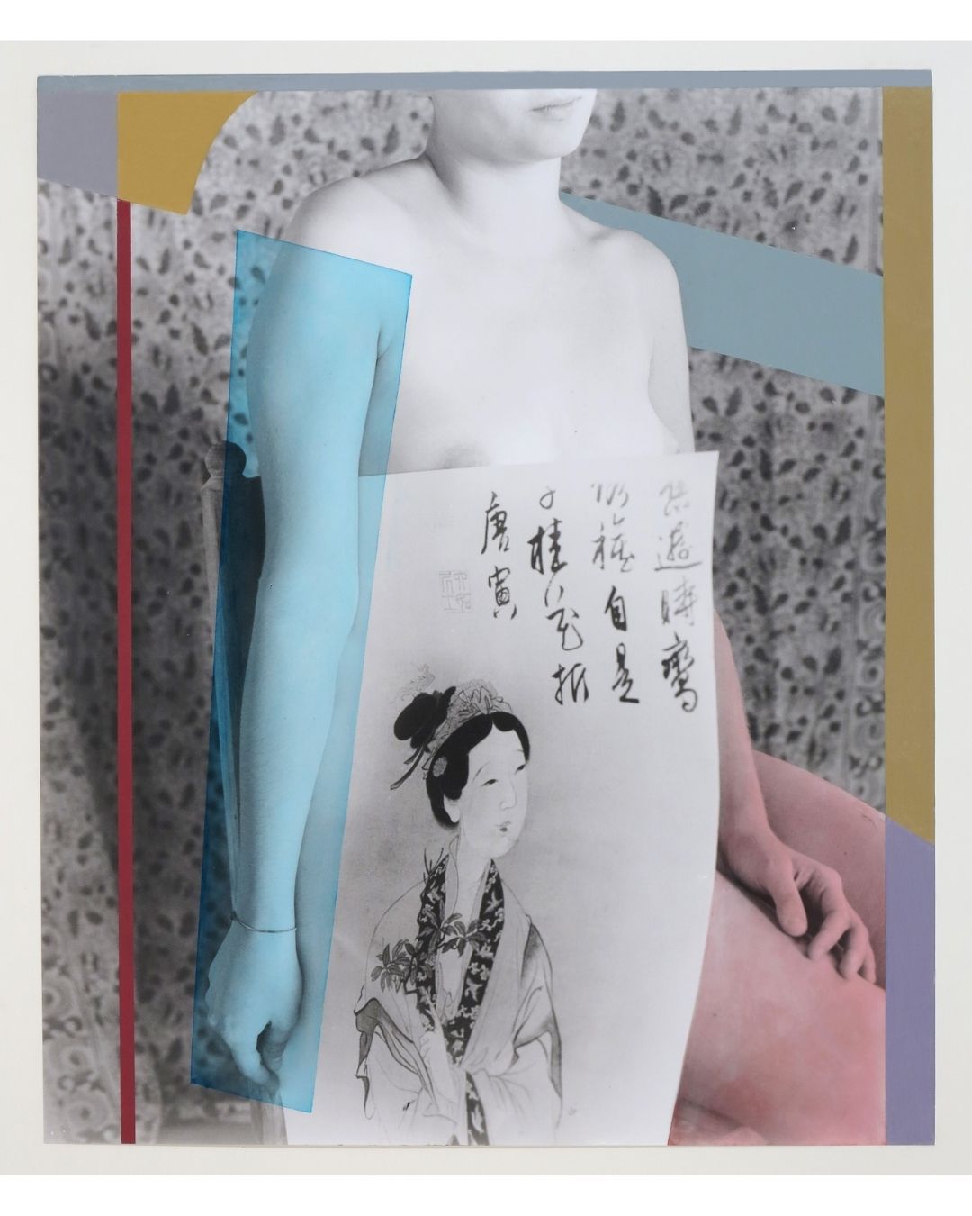 George Woodman. “Blue Arm and Chinese Maiden,” 2012, 24 x 19 1/2 in. Oil on gelatin silver print © Woodman Family Foundation / Artists Rights Society (ARS), New York